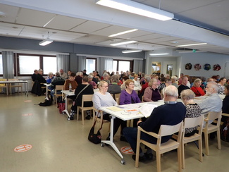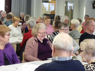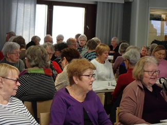 Lisäksi on laulua, lausuntaa, vitsejä, tietokilpailuja, arvontaa, tuolijumppaa , bingoa ym.